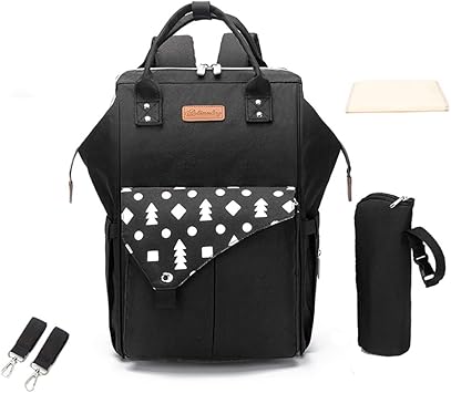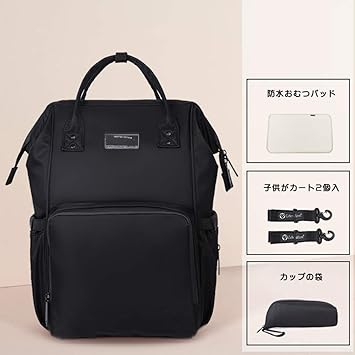 amazon co jp 赤ちゃんのおむつバッグバックパック おむつ替えバッグ おむつパッドと魔法瓶カップバッグ 大容量防水ファッションママバッグ 黒 スポーツ アウトドア