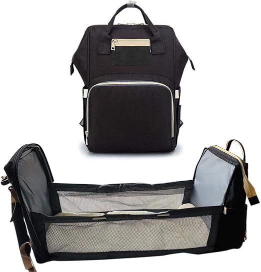 amazon co jp 多機能ベビーバックパックポータブルおむつバッグおむつバックパックベッド大容量 折りたたみ式ベビーベッドママバッグ ベビートラベルベビーベッドを変更backapack 黒 ホーム キッチン